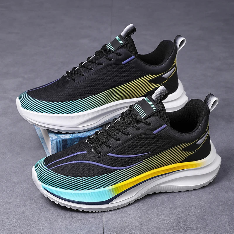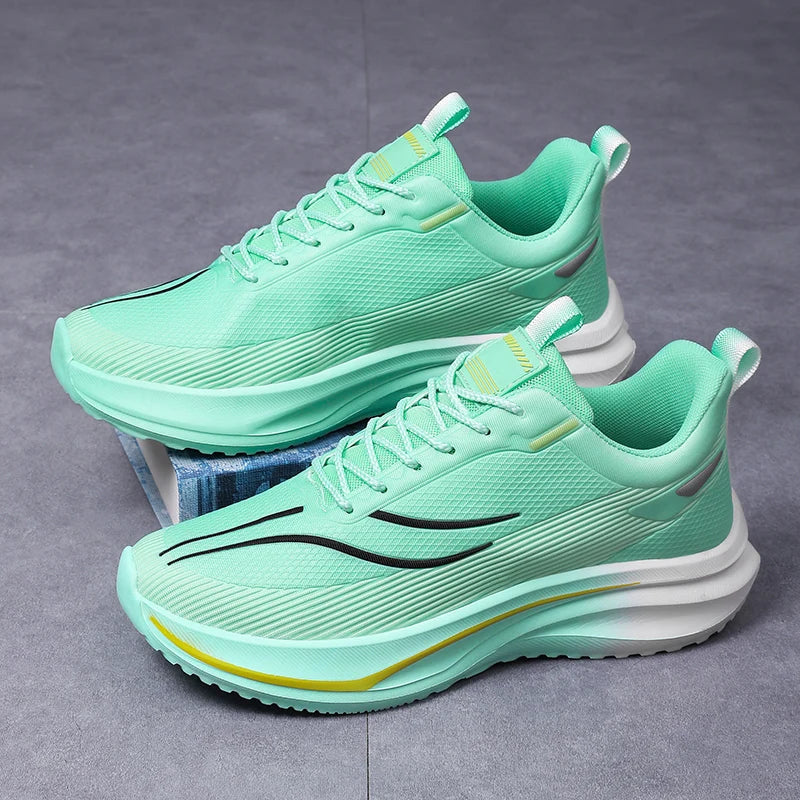 These sneakers boast a textured upper for breathability, paired with a raised midsole for superior shock absorption. Ergonomically designed, they offer balanced support and a responsive feel, perfect for both active days and casual wear.