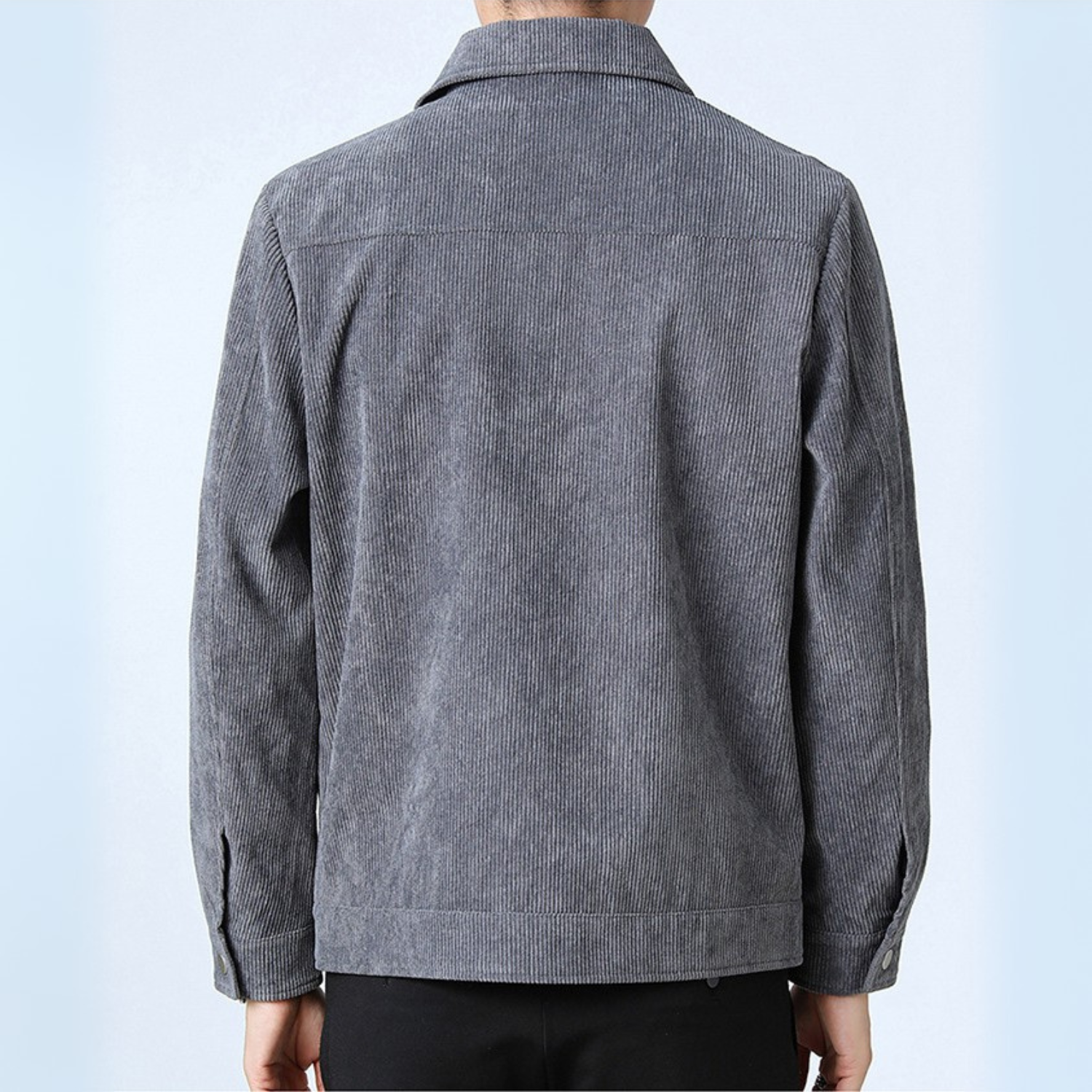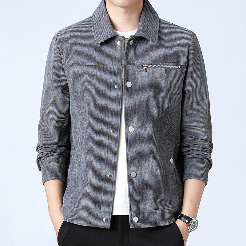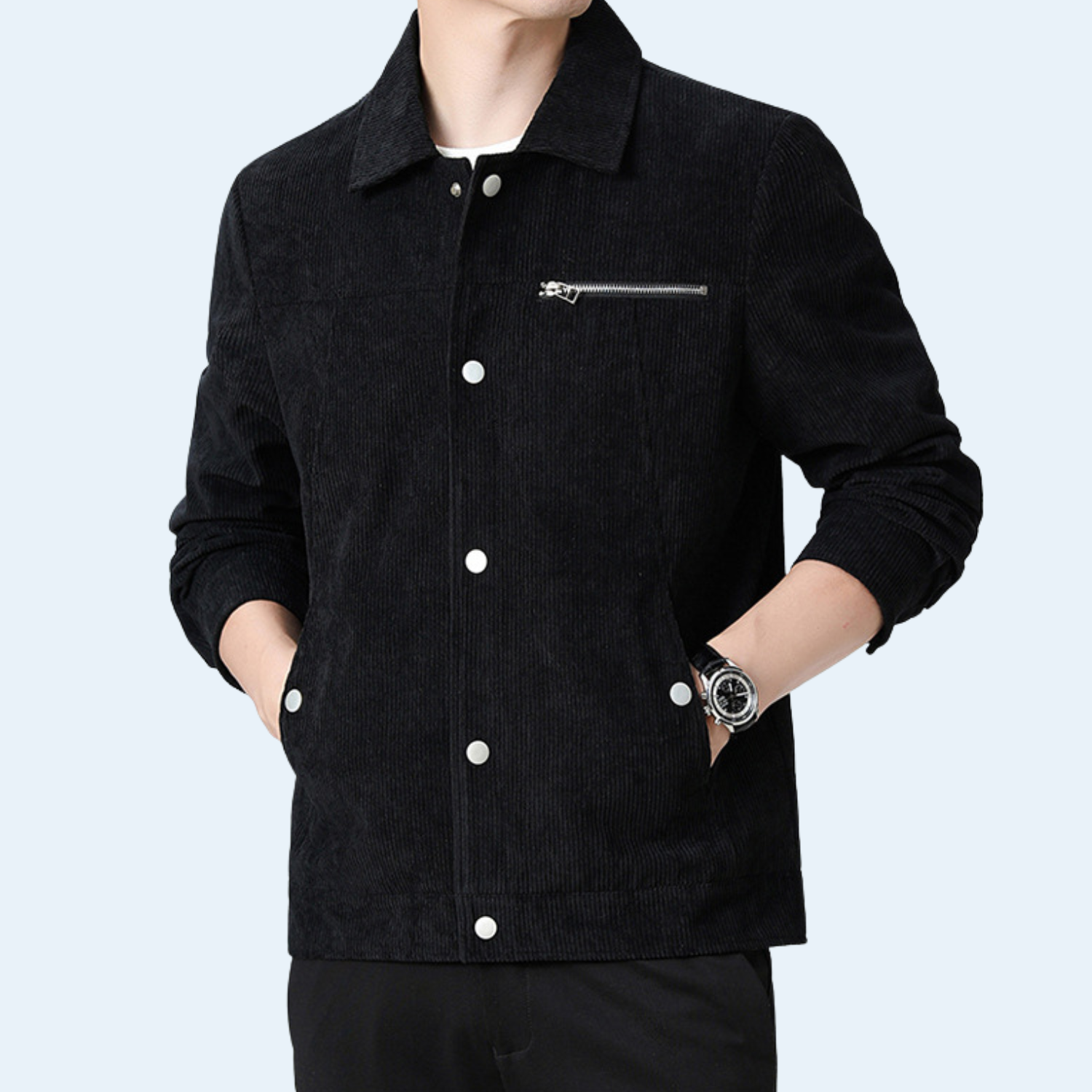 Crafted from fine-wale corduroy, the jacket delivers a refined texture that feels substantial in hand. The snap-front closure creates a clean, tailored finish. A single zipper pocket adds a subtle accent of modern utility. Designed with structure, it holds its form and presence through repeated wear.