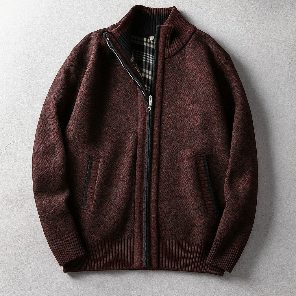 Crafted from a heavyweight cotton-blend knit with a rich, dimensional texture and an elevated handfeel. The stand collar and full-zip front lend a refined silhouette, while ribbed trims at the cuffs and hem add a touch of structure and balance.