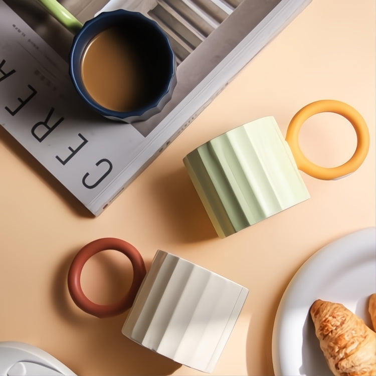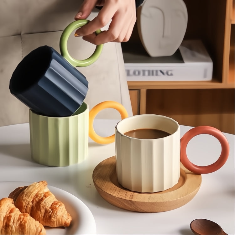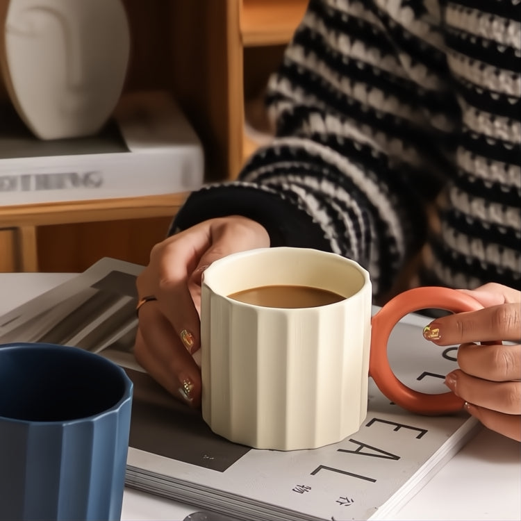 Enjoy your coffee or tea in this beautifully crafted ceramic mug that feels just as good in your hands as it looks on your table. With its stylish ribbed design and comfortable, oversized handle, it’s the kind of mug that makes every sip feel a little extra special.